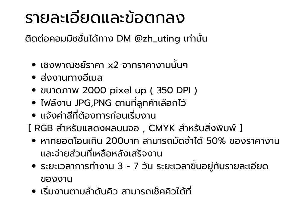xx ขอความกรุณาไม่ยกเลิกคิวหลังจากเริ่มงานแล้วนะคะ หากยกเลิกคิวหลังจากเริ่มงานไปแล้ว ทางเราขออนุญาตยึดมัดจำทั้งหมด xx